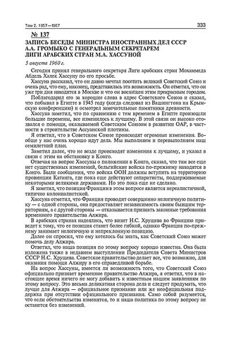 Запись беседы министра иностранных дел СССР А.А. Громыко с Генеральным секретарем Лиги арабских стран М.А. Хассуной. 5 августа 1960 г. // АВП РФ. Ф. 087. Оп. 21. П. 32. Д. 4.