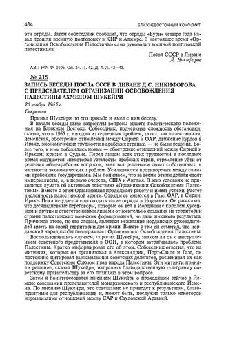 Главная Серия «Россия. XX век. Документы» Ближневосточный конфликт Ближневосточный конфликт Том 2. 1947—1967 Запись беседы посла СССР в Ливане Д.С. Никифорова с председателем О...