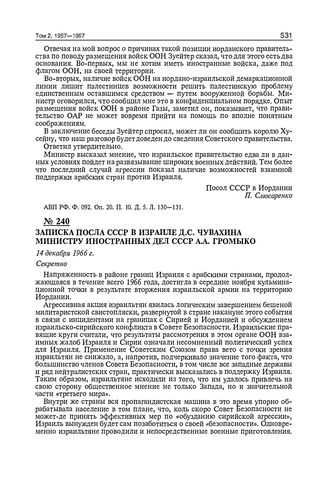 Записка посла СССР в Израиле Д.С. Чувахина министру иностранных дел СССР А.А. Громыко. 14 декабря 1966 г. // АВП РФ. Ф. 089. Оп. 19. П. 38. Д. 1. Л. 47-54.
