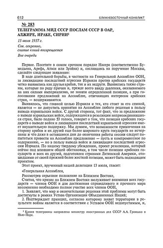 Телеграмма МИД СССР послам СССР в ОАР, Алжире, Ираке, Сирии. 15 июля 1967 г. // АВП РФ. Ф. 059. Оп. 56. П. 117. Д. 523. Л. 75 -79.