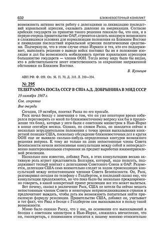 Телеграмма посла СССР в США А.Ф. Добрынина в МИД СССР. 19 октября 1967 г. // АВП РФ. Ф. 059. Оп. 56. П. 27. Д. 121. Л. 393-402.