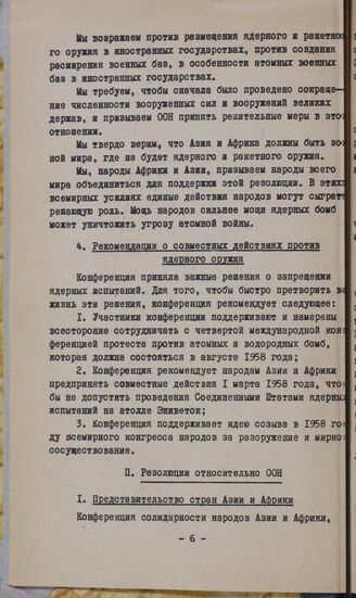 I Конференция солидарности народов Азии и Африки. Каир, 26 декабря 1937 г.-1 января 1938 г. Политические резолюции. I. Резолюции об атомном оружии и разоружении. 3. Резолюция о разоружении и устранении угрозы атомной войны