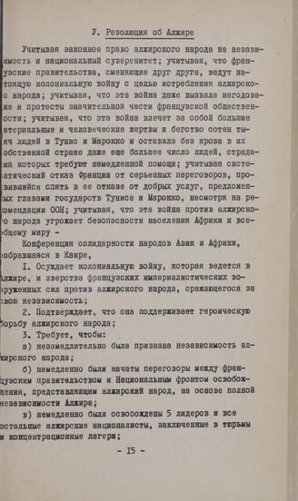 I Конференция солидарности народов Азии и Африки. Каир, 26 декабря 1937 г.-1 января 1938 г. Политические резолюции. V. Резолюция об Алжире