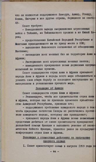 Сессия Совета Организации солидарности народов Азии и Африки. Каир, 11-13 февраля 1959 г. Резолюция об Алжире