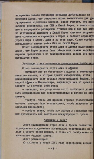 Сессия Совета Организации солидарности народов Азии и Африки. Каир, 11-13 февраля 1959 г. Резолюция о так называемом деголлевском плебисците