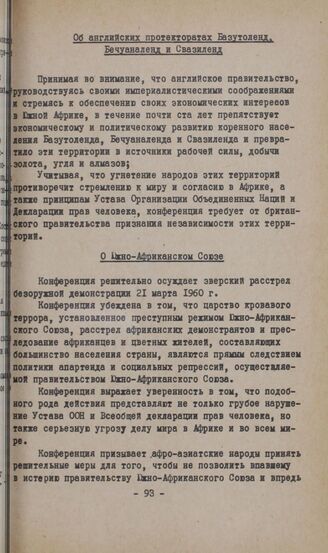 II-ая конференция Организации солидарности народов Азии и Африки. Конакри, 11-15 апреля 1960 г. Резолюция по отдельным странам. О Южно-Африканском Союзе