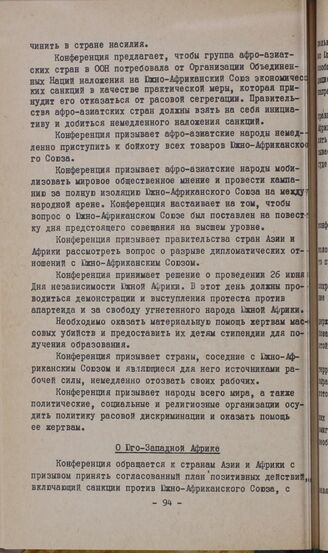 II-ая конференция Организации солидарности народов Азии и Африки. Конакри, 11-15 апреля 1960 г. Резолюция по отдельным странам. О Юго-Западной Африке