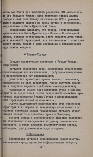 II-ая конференция Организации солидарности народов Азии и Африки. Конакри, 11-15 апреля 1960 г. Резолюция по отдельным странам. О Руанда-Урунди