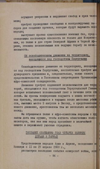 II-ая конференция Организации солидарности народов Азии и Африки. Конакри, 11-15 апреля 1960 г. Резолюция по отдельным странам. Об освободительном движении на территориях, находящихся под господством Португалии