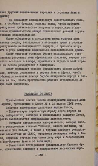Чрезвычайная сессия Совета солидарности народов Азии и Африки. Каир, 21-22 января 1961 г. Резолюция по Лаосу