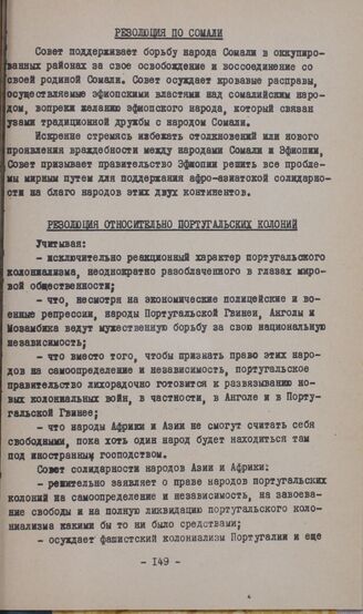 Чрезвычайная сессия Совета солидарности народов Азии и Африки. Каир, 21-22 января 1961 г. Резолюция по Сомали