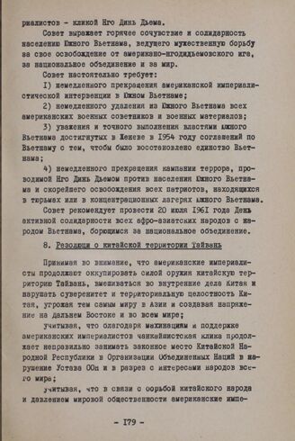Сессия Совета Организации солидарности народов Азии и Африки. Бандунг, 10-15 апреля 1961 г. Вторая комиссия. 8. Резолюци о китайской территории Тайвань