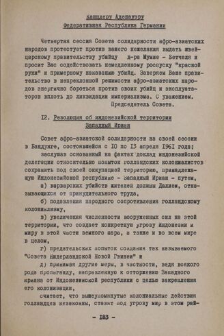 Сессия Совета Организации солидарности народов Азии и Африки. Бандунг, 10-15 апреля 1961 г. Вторая комиссия. 11. Телеграммы по поводу "красной руки", принятые Второй комиссией. Канцлеру Аденауэру, Федеративная Республика Германии