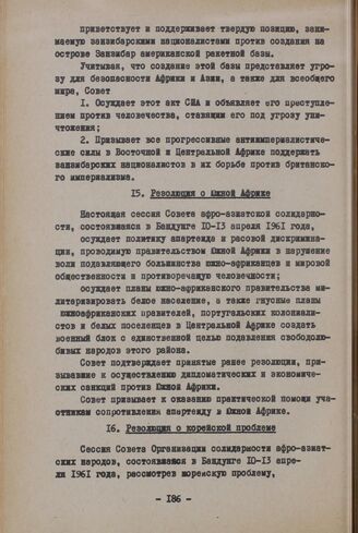 Сессия Совета Организации солидарности народов Азии и Африки. Бандунг, 10-15 апреля 1961 г. Вторая комиссия. 15. Резолюция о Южной Африке