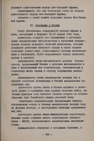 Сессия Совета Организации солидарности народов Азии и Африки. Бандунг, 10-15 апреля 1961 г. Вторая комиссия. 20. Резолюция о Японии