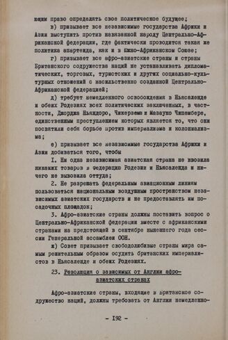 Сессия Совета Организации солидарности народов Азии и Африки. Бандунг, 10-15 апреля 1961 г. Вторая комиссия. 23. Резолюция о зависимых от Англии афро-азиатских странах