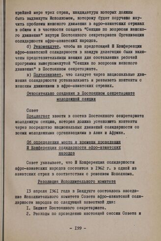 Сессия Совета Организации солидарности народов Азии и Африки. Бандунг, 10-15 апреля 1961 г. Третья комиссия. Резолюции об укреплении движения солидарности афро-азиатских народов. Об определении места и времени проведения III Конференции солидарности афро-азиатских народов