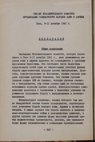 Сессия Исполнительного комитета Организации солидарности народов Азии и Африки. Газа, 9-11 декабря 1961 г. Общая декларация