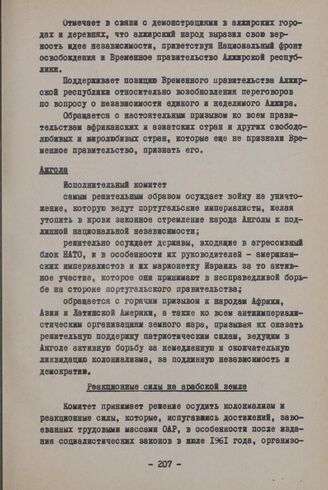 Сессия Исполнительного комитета Организации солидарности народов Азии и Африки. Газа, 9-11 декабря 1961 г. Резолюции. Ангола