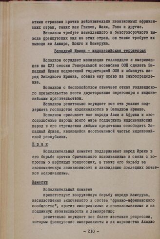 Сессия Исполнительного комитета Организации солидарности народов Азии и Африки. Газа, 9-11 декабря 1961 г. Резолюции. Камерун