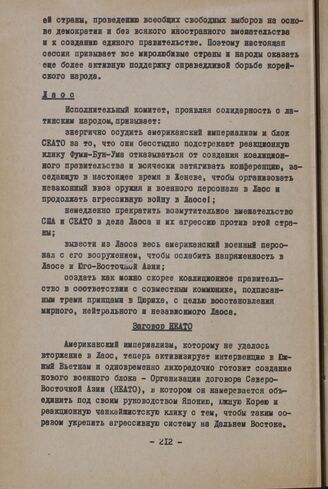 Сессия Исполнительного комитета Организации солидарности народов Азии и Африки. Газа, 9-11 декабря 1961 г. Резолюции. Лаос