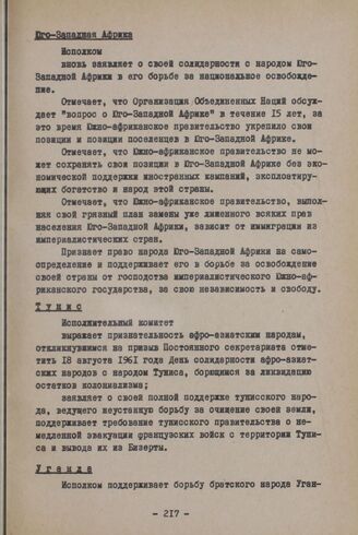 Сессия Исполнительного комитета Организации солидарности народов Азии и Африки. Газа, 9-11 декабря 1961 г. Резолюции. Тунис