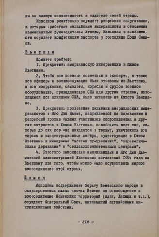 Сессия Исполнительного комитета Организации солидарности народов Азии и Африки. Газа, 9-11 декабря 1961 г. Резолюции. Йемен
