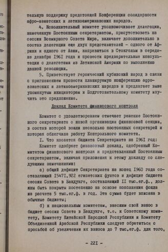 Сессия Исполнительного комитета Организации солидарности народов Азии и Африки. Газа, 9-11 декабря 1961 г. Доклад Комитета финансового контроля