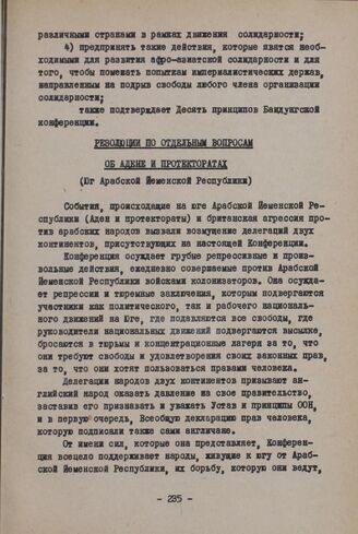 III-я конференция организации солидарности народов Азии и Африки. Моши (Танганьика), 4-11 февраля 1963 г. Первый комитет. Резолюции по отдельным вопросам. Об Адене и протекторатах (Юг Арабской Йеменской Республики)