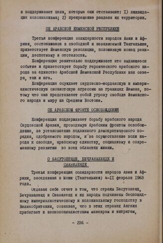 III-я конференция организации солидарности народов Азии и Африки. Моши (Танганьика), 4-11 февраля 1963 г. Первый комитет. Резолюции по отдельным вопросам. Об Арабском фронте освобождения