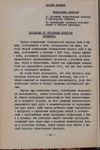 III-я конференция организации солидарности народов Азии и Африки. Моши (Танганьика), 4-11 февраля 1963 г. Третий комитет. Резолюция по проблемам культуры