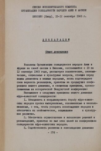 Сессия Исполнительного комитета Организации солидарности народов Азии и Африки. Никозия (Кипр), 10-12 сентября 1963 г. Декларация