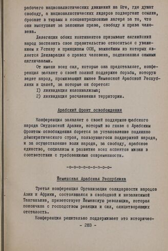 Сессия Исполнительного комитета Организации солидарности народов Азии и Африки. Никозия (Кипр), 10-12 сентября 1963 г. Политическая комиссия. Б. По специальным вопросам. Йеменская Арабская Республика