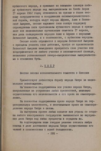 Сессия Исполнительного комитета Организации солидарности народов Азии и Африки. Никозия (Кипр), 10-12 сентября 1963 г. Политическая комиссия. Б. Специальные резолюции, принятые на кипрской сессии. 2. Кипр