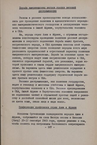 Сессия Исполнительного комитета Организации солидарности народов Азии и Африки. Никозия (Кипр), 10-12 сентября 1963 г. Политическая комиссия. Б. Специальные резолюции, принятые на кипрской сессии. Борьба американских негров против расовой дискрими...