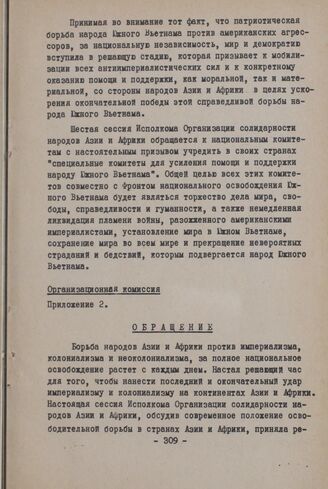 Сессия Исполнительного комитета Организации солидарности народов Азии и Африки. Никозия (Кипр), 10-12 сентября 1963 г. Организационная комиссия. Приложение 2. Обращение