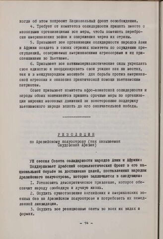 VIII сессия Совета Организации солидарности народов Азии и Африки. 13-17 февраля 1967 года. Никозия, Кипр. Резолюция по Аравийскому полуострову (так называемая Саудовская Аравия)