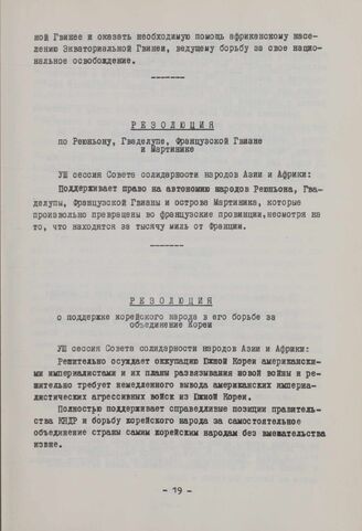 VIII сессия Совета Организации солидарности народов Азии и Африки. 13-17 февраля 1967 года. Никозия, Кипр. Резолюция по Реюньону, Гваделупе, Французской Гвиане и Мартинике