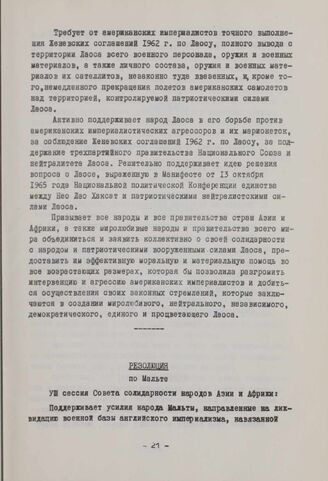 VIII сессия Совета Организации солидарности народов Азии и Африки. 13-17 февраля 1967 года. Никозия, Кипр. Резолюция по Мальте