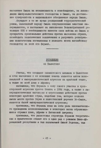 VIII сессия Совета Организации солидарности народов Азии и Африки. 13-17 февраля 1967 года. Никозия, Кипр. Резолюция по Палестине