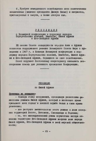 VIII сессия Совета Организации солидарности народов Азии и Африки. 13-17 февраля 1967 года. Никозия, Кипр. Резолюция по Южной Африке