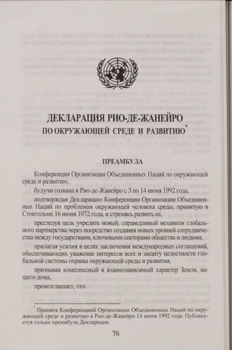 Декларация Рио-де-Жанейро по окружающей среде и развитию. Принята Конференцией Организации Объединенных Наций по окружающей среде и развитию в Рио-де-Жанейро 14 июня 1992 года