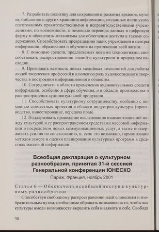 Всеобщая декларация о культурном разнообразии, принятая 31-й сессией Генеральной конференции ЮНЕСКО. Париж, Франция, ноябрь 2001