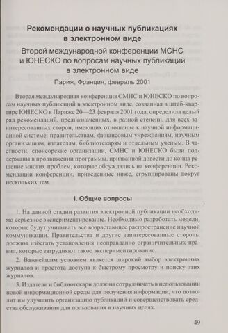 Рекомендации о научных публикациях в электронном виде Второй международной конференции МСНС и ЮНЕСКО по вопросам научных публикаций в электронном виде. Париж, Франция, февраль 2001