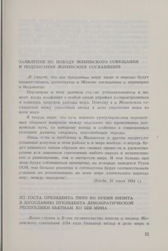 Президент Тито о вьетнамской проблеме с 1954 по 1968 год. Заявление по поводу женевского совещания и подписания женевских соглашений