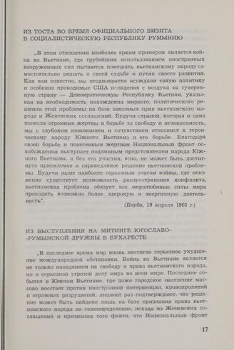 Президент Тито о вьетнамской проблеме с 1954 по 1968 год. Из тоста во время официального визита в Социалистическую Республику Румынию