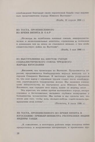 Президент Тито о вьетнамской проблеме с 1954 по 1968 год. Из тоста, произнесенного во время визита в ОАР // Борба, 3 мая 1966 г.