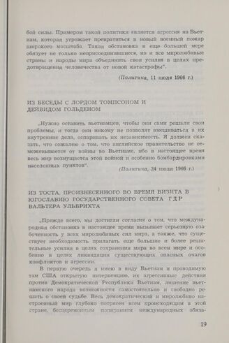 Президент Тито о вьетнамской проблеме с 1954 по 1968 год. Из тоста, произнесенного во время визита в Югославию Государственного совета ГДР Вальтера Ульбрихта // Политика, 28 сентября 1966 г.