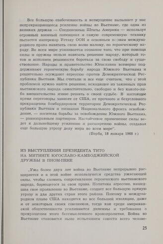 Президент Тито о вьетнамской проблеме с 1954 по 1968 год. Из выступления президента Тито на митинге югославо-камбоджийской дружбы в Пном-Пене