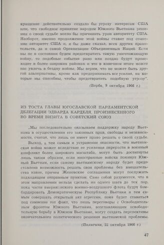 Из тоста главы Югославской парламентской делегации Эдварда Карделя, произнесенного во время визита в Советский Союз // Политика, 22 октября 1966 г.
